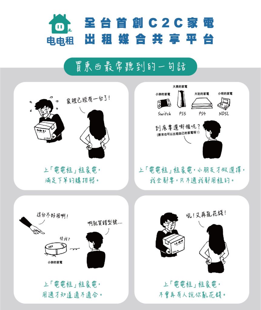 從最初分享自家家電的想法出發,電電租後來逐漸發展成更具平台性的模式。